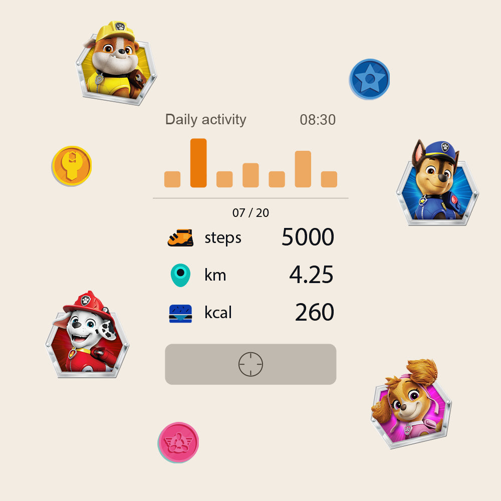 ¡Mantente activo con Cubitt Jr. x Paw Patrol! ¡Verifica tu ritmo cardíaco y utiliza 10 modos deportivos como caminar, correr e incluso baloncesto! ¡Serás un pequeño gurú del fitness en poco tiempo!