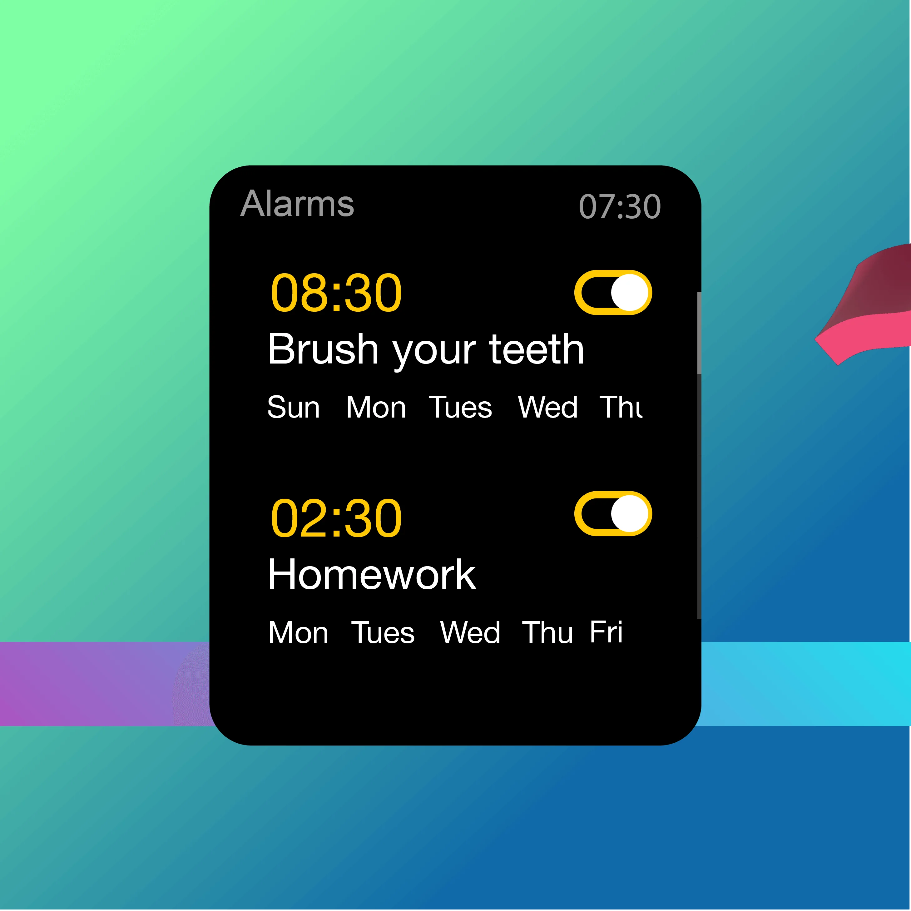 ¡Dile adiós a olvidar cosas! Cubitt Teens viene con 10 alarmas para ayudarte a llevar a cabo tu rutina diaria. Desde despertarte hasta la hora de dormir, ¡te tiene cubierto!