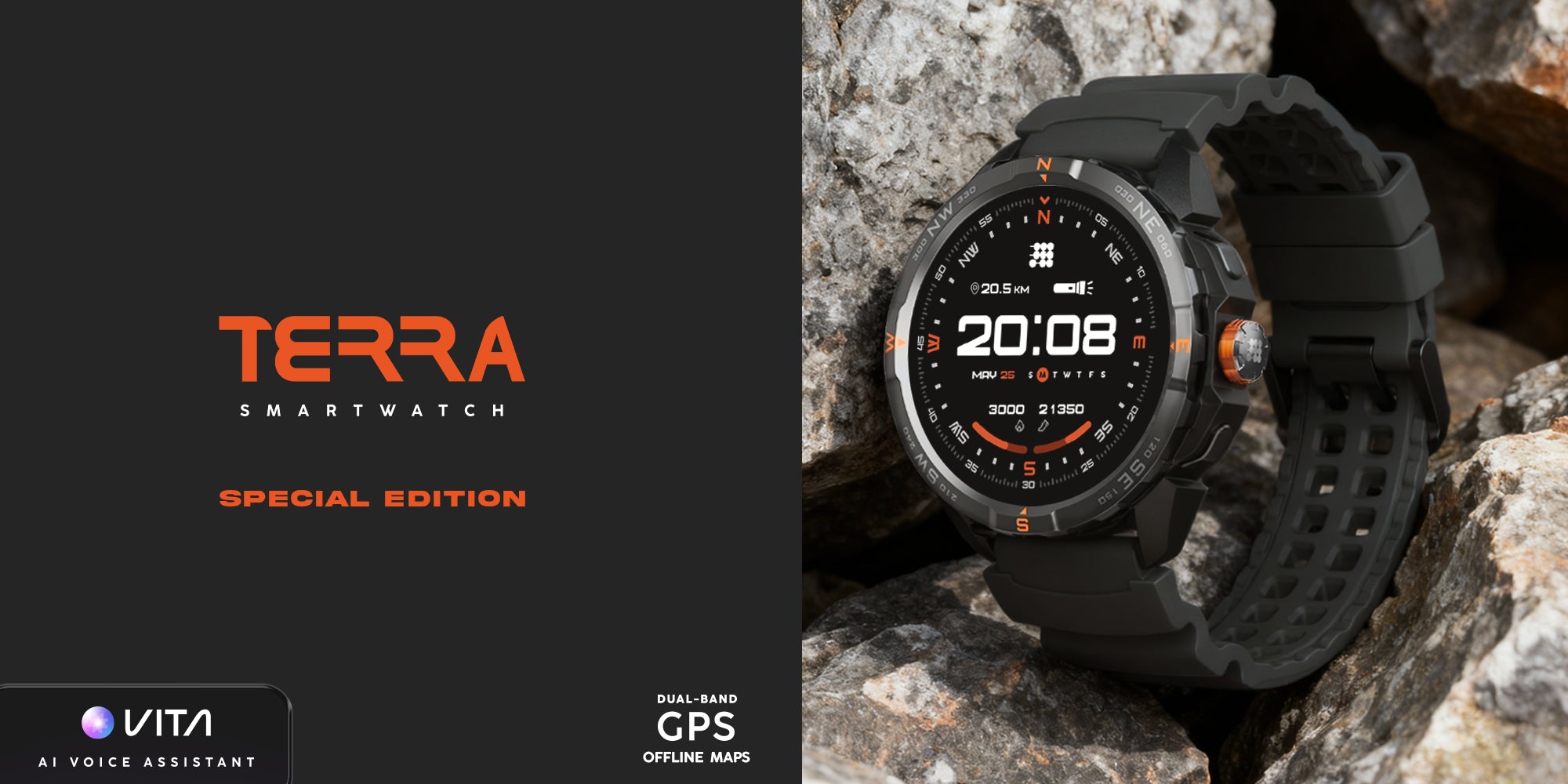 Con la misma potencia y tecnología del Terra original — certificación de grado militar, GPS de doble banda, resistencia al agua 5ATM y pantalla AMOLED ultra-brillante de 1.48” — esta edición especial incluye una correa adicional intercambiable, para que combines tu estilo con cualquier ocasión.